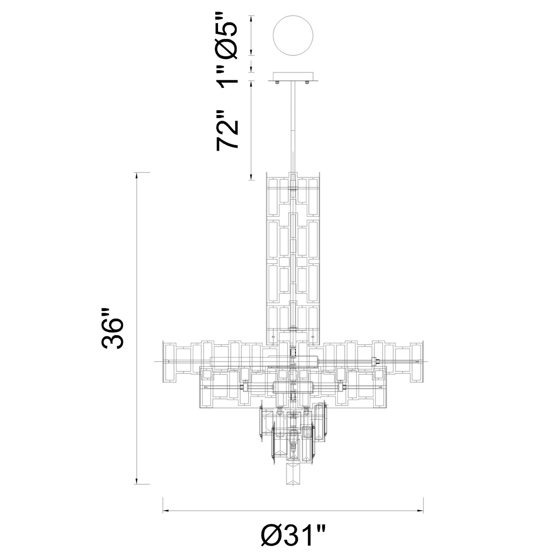 Dimensions: H 36 inches x W 30 inches x D 30 inches – Champagne Finish – Requires 18 G9 Bulbs Max 40 W (sold separately) – Hanging Method Height adjustable up to 72 inches