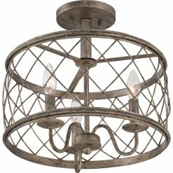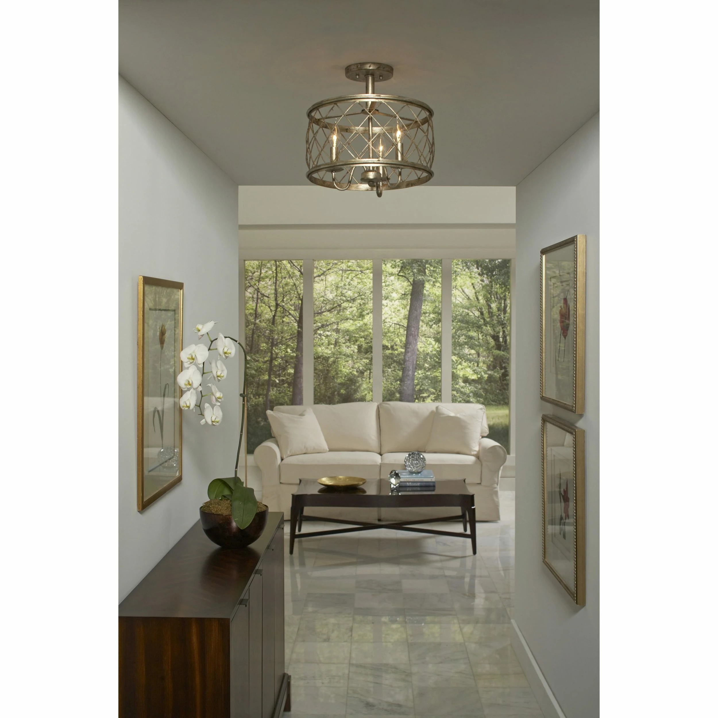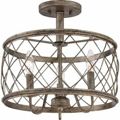 Supply soft light to your hallway with the traditional charm of this Gracewood Hollow Muzaka light fixture. The light gold finish accentuates the circular shape of the caged-style shade to lend a chic lighting option to your space. Three bulbs inside this semi-flush mount fixture illuminate your room with warm ambient lighting.