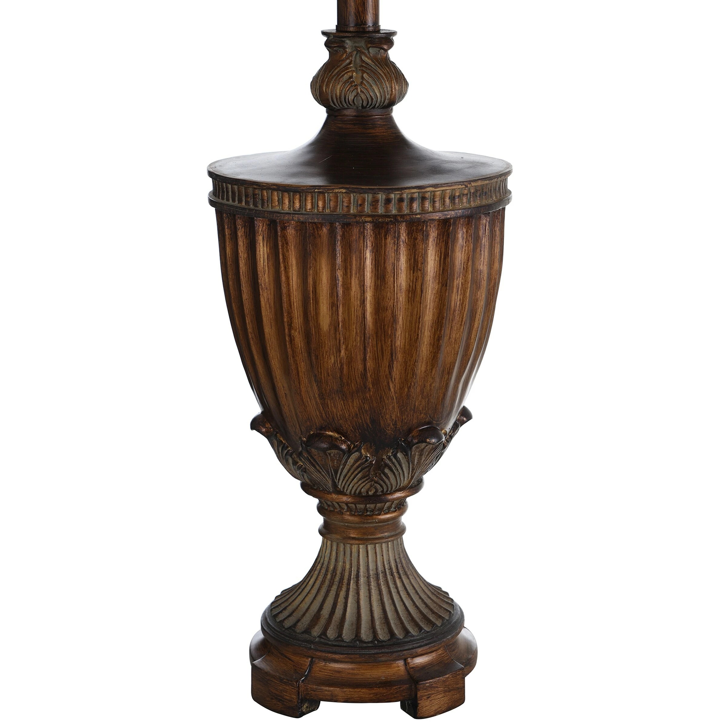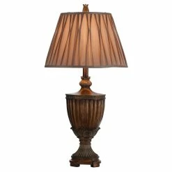 With its classic urn design and folded dark brown shade, this Auxier table lamp from Gracewood Hollow offers the utmost in sumptuous style. Place this lamp on an end table in your living room where guests will be able to see and appreciate its bronze finish and metallic accents.