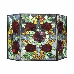 Offer your space an entirely new and fashionable flavor, in the form of this colorful piece. This Tiffany-style, floral decorative fireplace screen will add color, warmth, and beauty to any room. Hand made from 523 pieces of hand cut pieces of art glass and fifteen glass beads in tones of green, red, and white.