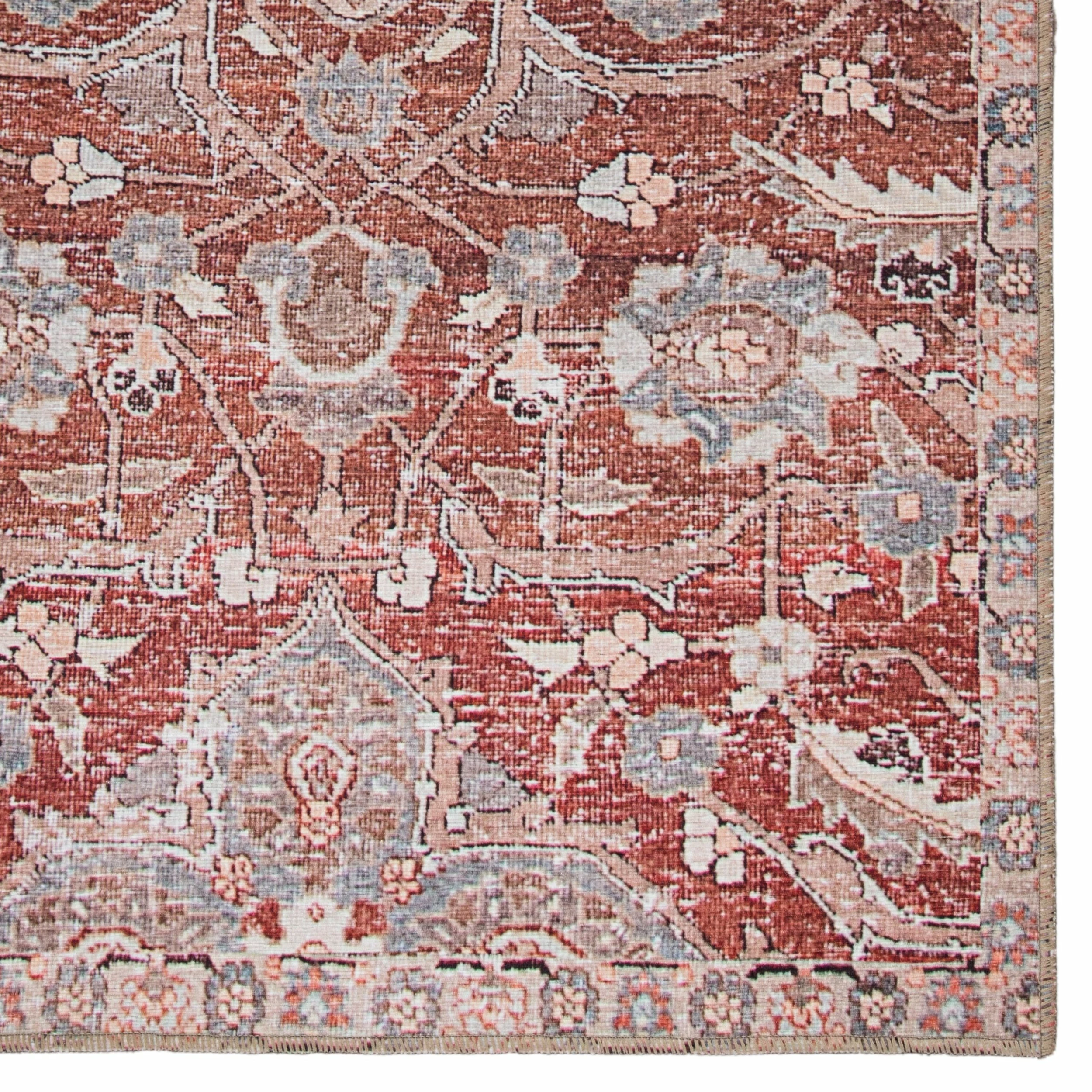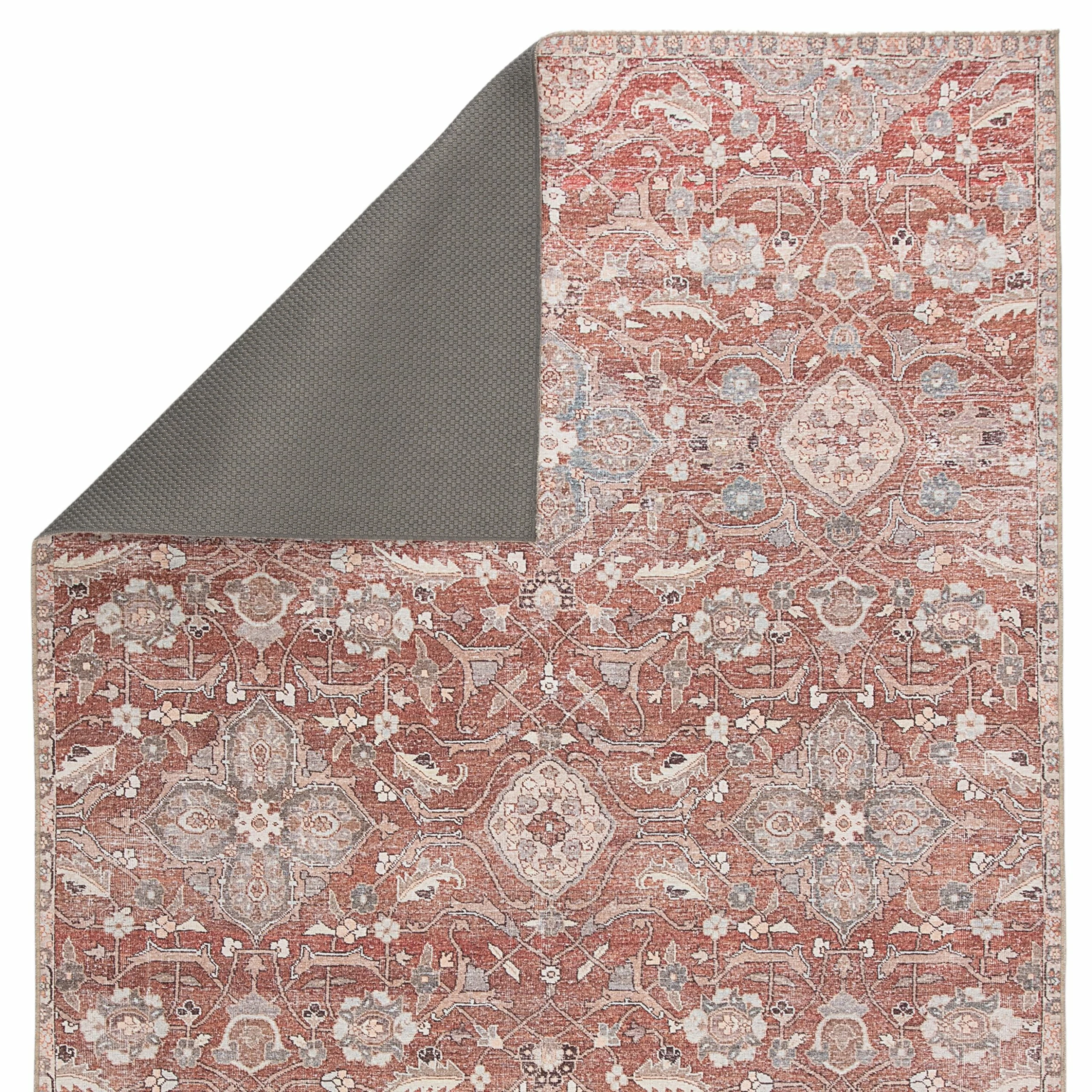 Printed on a robust polyester capable of withstanding the elements, this piece showcases a flat, durable finish, for a great floor-space solution in both indoor and outdoor spaces. This traditionally styled rug boasts an intricate Turkish pattern of elegant fleurettes in a brick red, pink, and grey color palette.