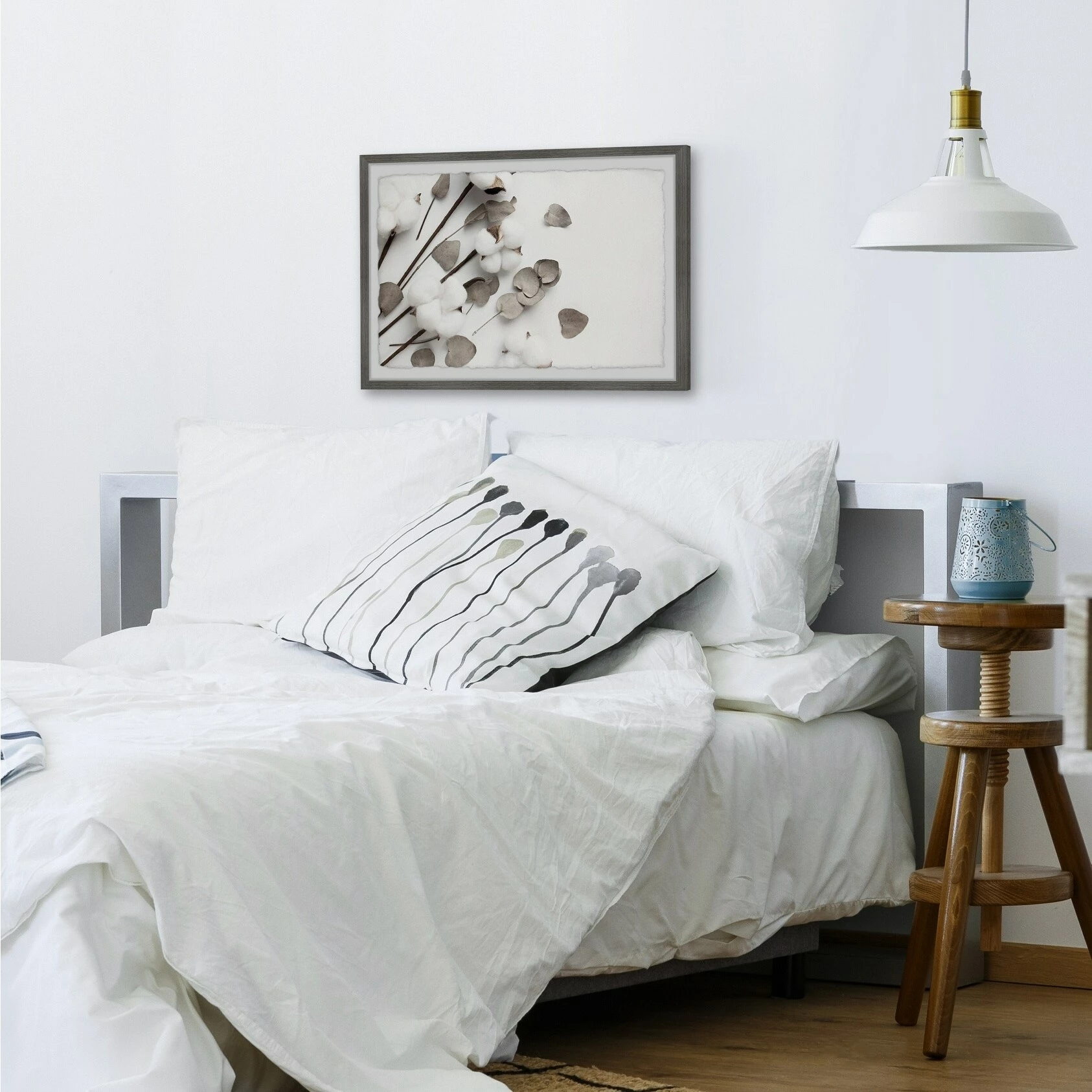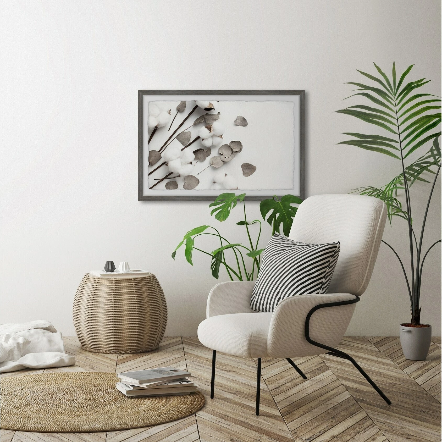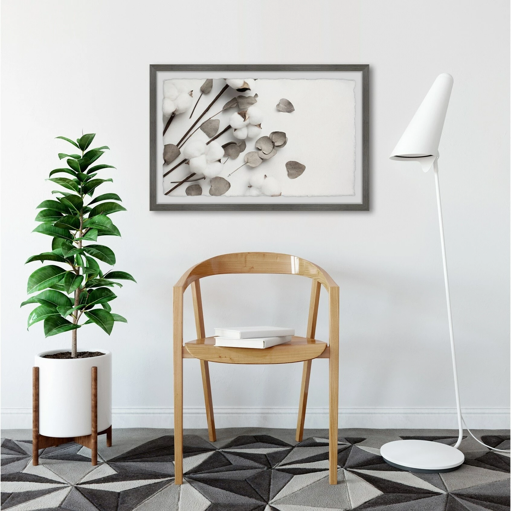 Thoughtfully framed in a quality warp-resistant wood frame and boasting an elegant cotton blossom motif, this art offers you a welcome respite from a long, hard day. Casually mosey through your own little cotton field any time you like, without even having to water or weed.