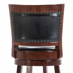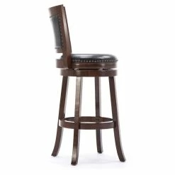 Refined traditional style melds with comfort on the Bristol Swivel Stool. This bar height stool is crafted with precise attention to detail using solid hardwood with a high-density foam seat and backrest cushion. Faux leather polyurethane upholstery is accented by nailhead trim made from genuine brass. Each of the nailheads is applied individually by hand. On the base, flared legs and a stability stretcher offer enhanced durability and balance when you’re seated. The protective metal plate on the footrest guards against potential scuffs or scratches from your feet. Choose from the wide range of available finish options. The Bristol Swivel Stool is also available in counter height options.