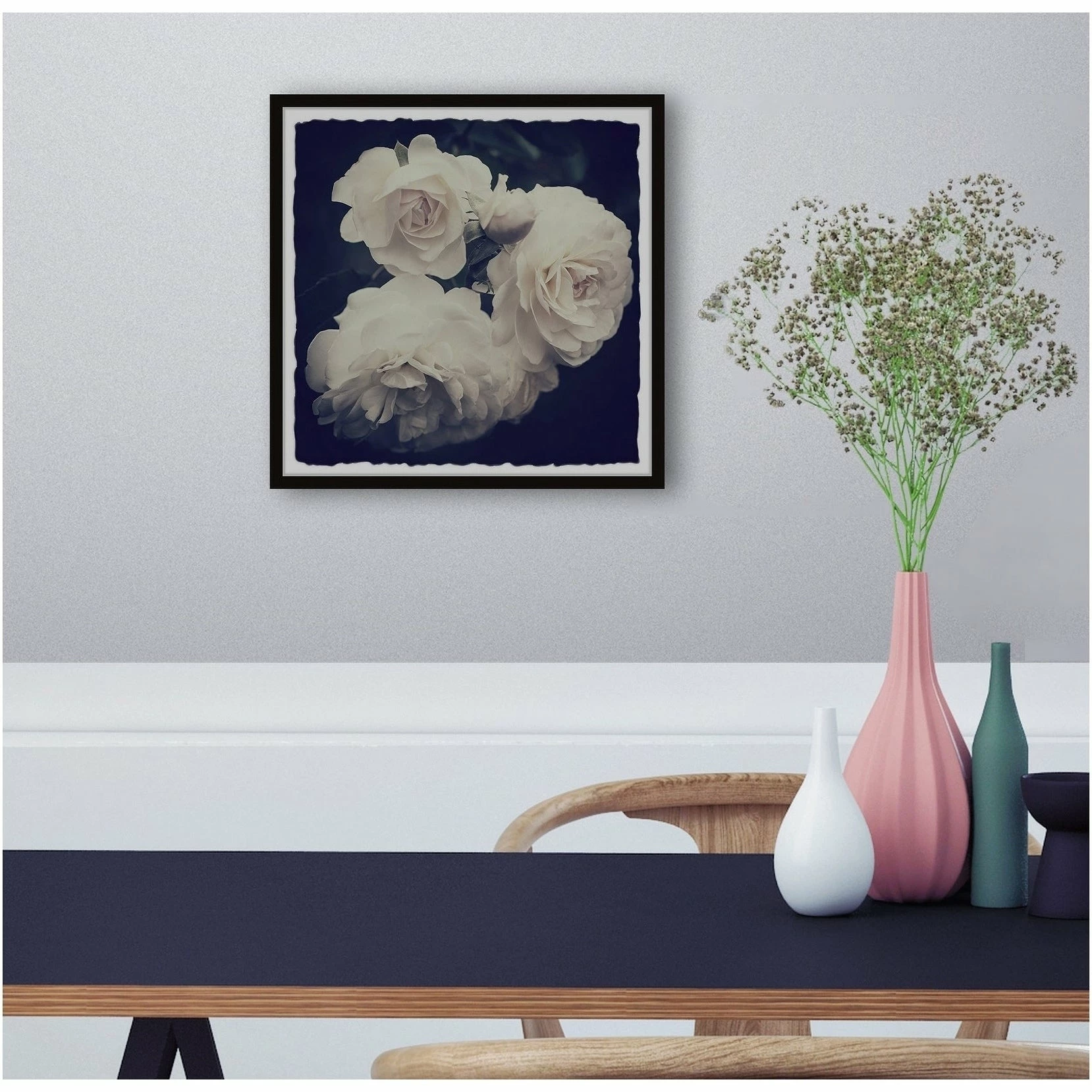 Savor the glamorous elegance of this gorgeous piece: a framed painting print showing off a charming rose blossom that catches the eye. Stylishly framed in a quality, warp-resistant wood frame and boasting an elegant rose blossom motif, this art offers you a welcome respite from a long, hard day.