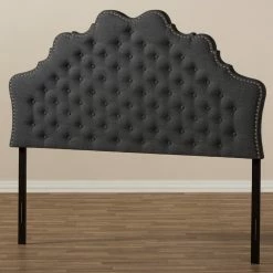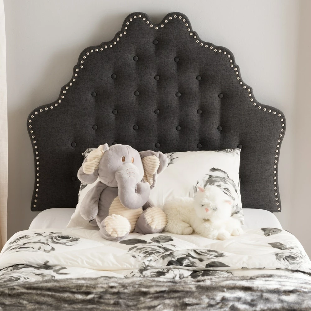 Elevate your bedroom with the luxurious elegance of this upholstered headboard. Available in a dark or light grey to match your decor, the headboard boasts button tufting and nailhead trim for a vintage, glamorous flair. Foam padding and sturdy construction ensures lasting comfort.