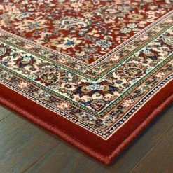 Rendered in red and grey colors, this machine-woven Flanagan area rug from Gracewood Hollow will upgrade your living room. The rectangular rug is made from polypropylene and synthetic fiber yarns that intertwine in a twisting floral and leaf pattern with an ornamental border. This stain resistant rug will lend traditional style to your living room.