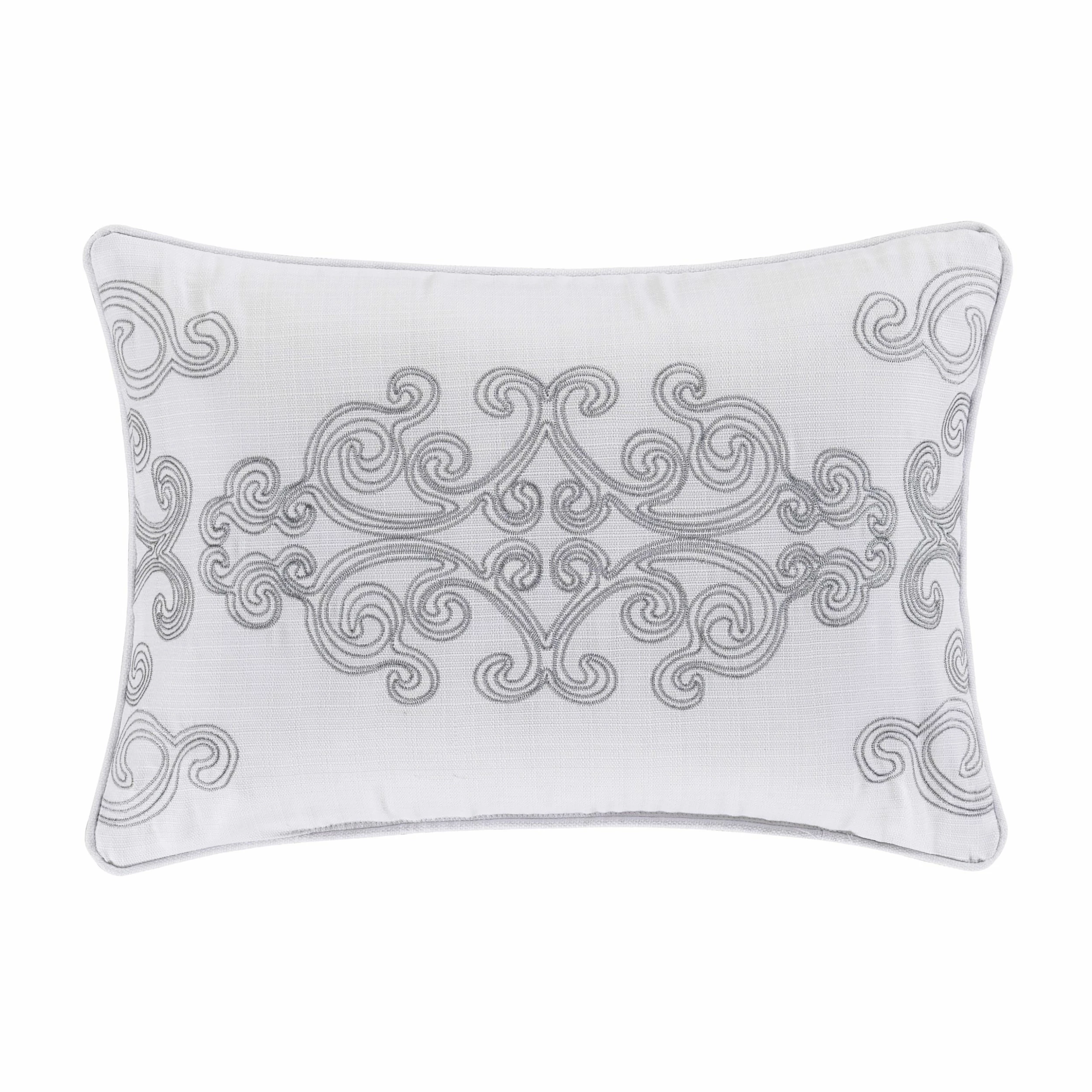 If you’re seeking a small, fresh injection of light, clean style into your bedroom, then seek no further! This boudoir pillow is made using a textured ivory fabric with a unique, stylized, medium grey embroidery running across its face, for a distinctive and versatile pop of subdued, versatile elegance in nearly any decor theme or space.