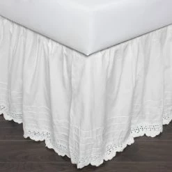 This winsome bed skirt is machine washable for easy maintenance and comes in two lovely pale colors. Designed for style and luxury, this beautiful bedskirt is made from cotton, with lovely crochet detailing and an eighteen-inch drop.