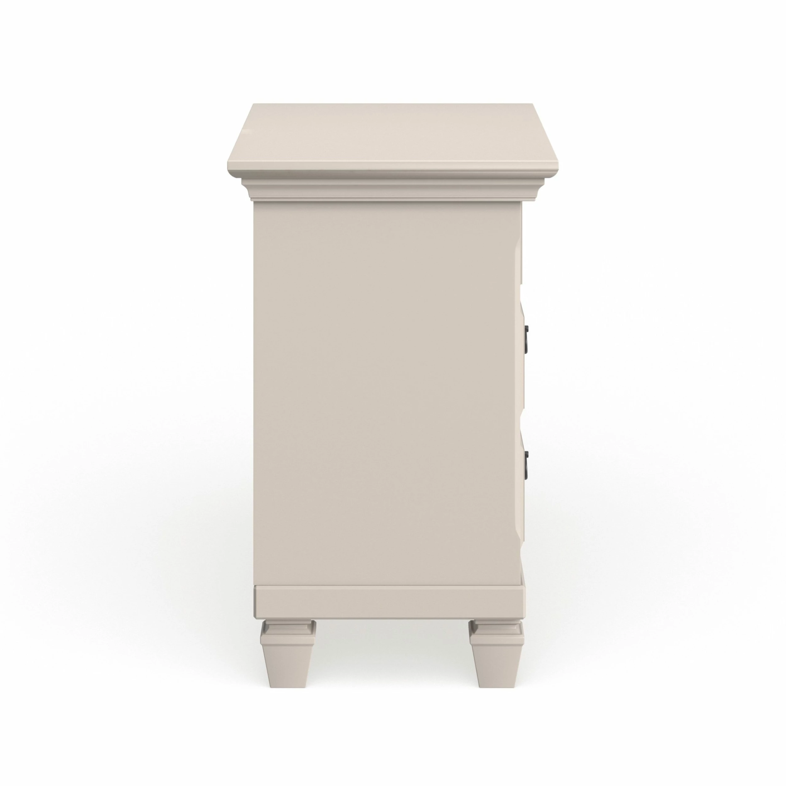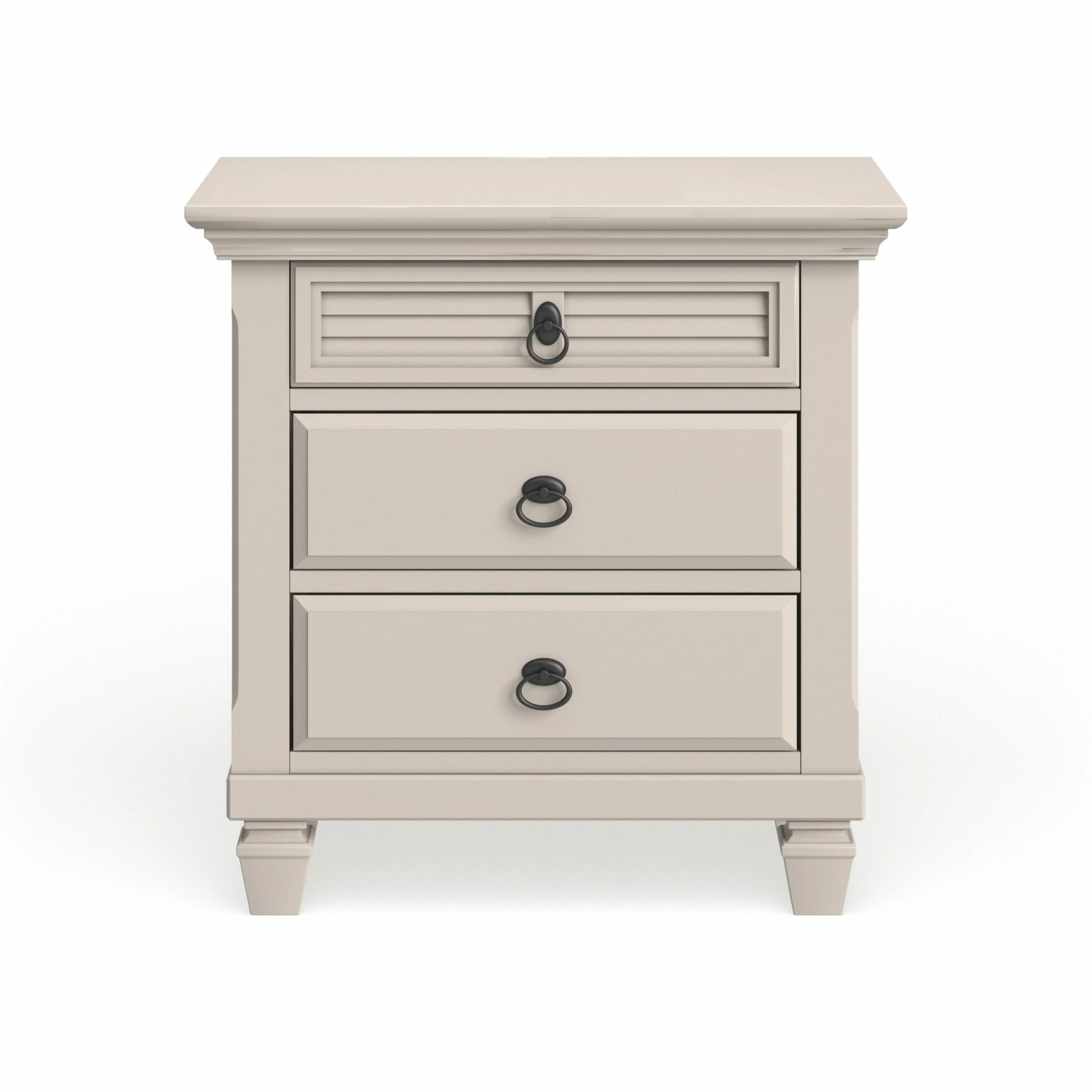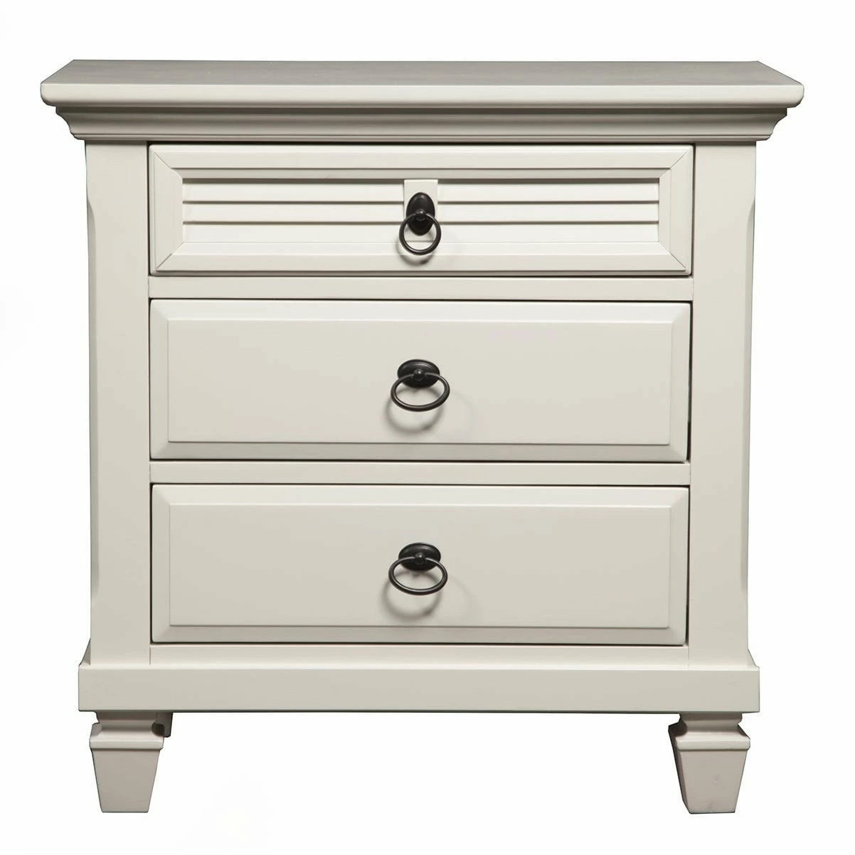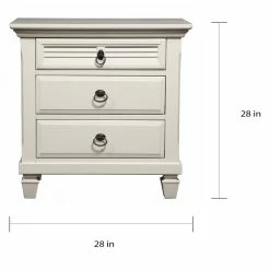 Add an elegant and spacious bedroom piece to your bedroom with this white nightstand. This nightstand has a spacious surface and three drawers so you can easily keep things tucked away.Crafted of solid pine wood for outstanding durability with daily use, this handsome nightstand features a clean white finish that’s easy to pair with existing designs.