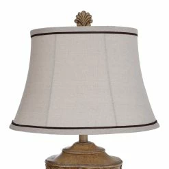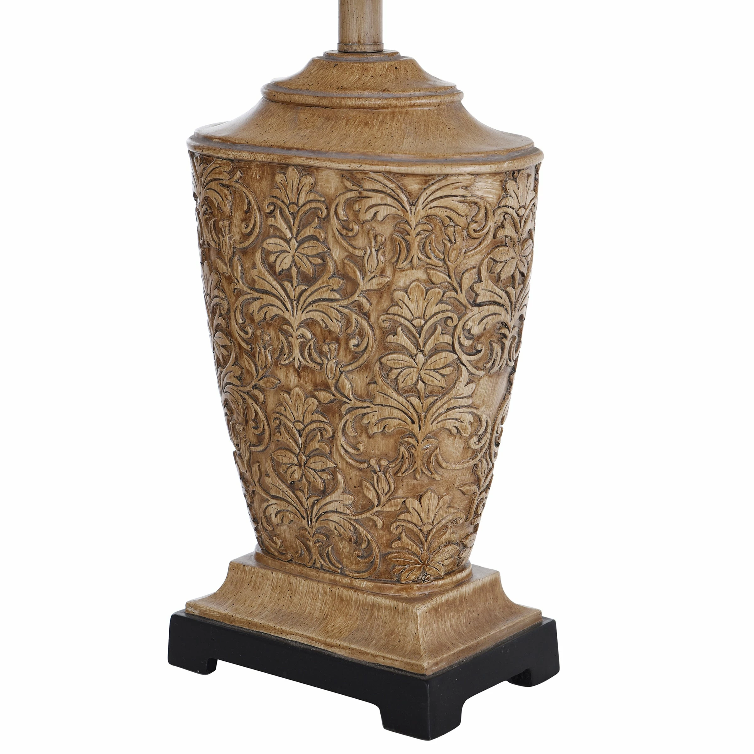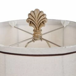 Illuminate your home with this traditional table lamp. This lamp features an intricate floral pattern carved into the base that will provide an old-fashioned elegant look. The natural linen softback fabric shade contrasts beautifully with the cream body. Your living room will start getting a lot more adoration with this lamp in it. This lamp will add a warm and soft glow to any area in need of additional lighting.