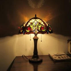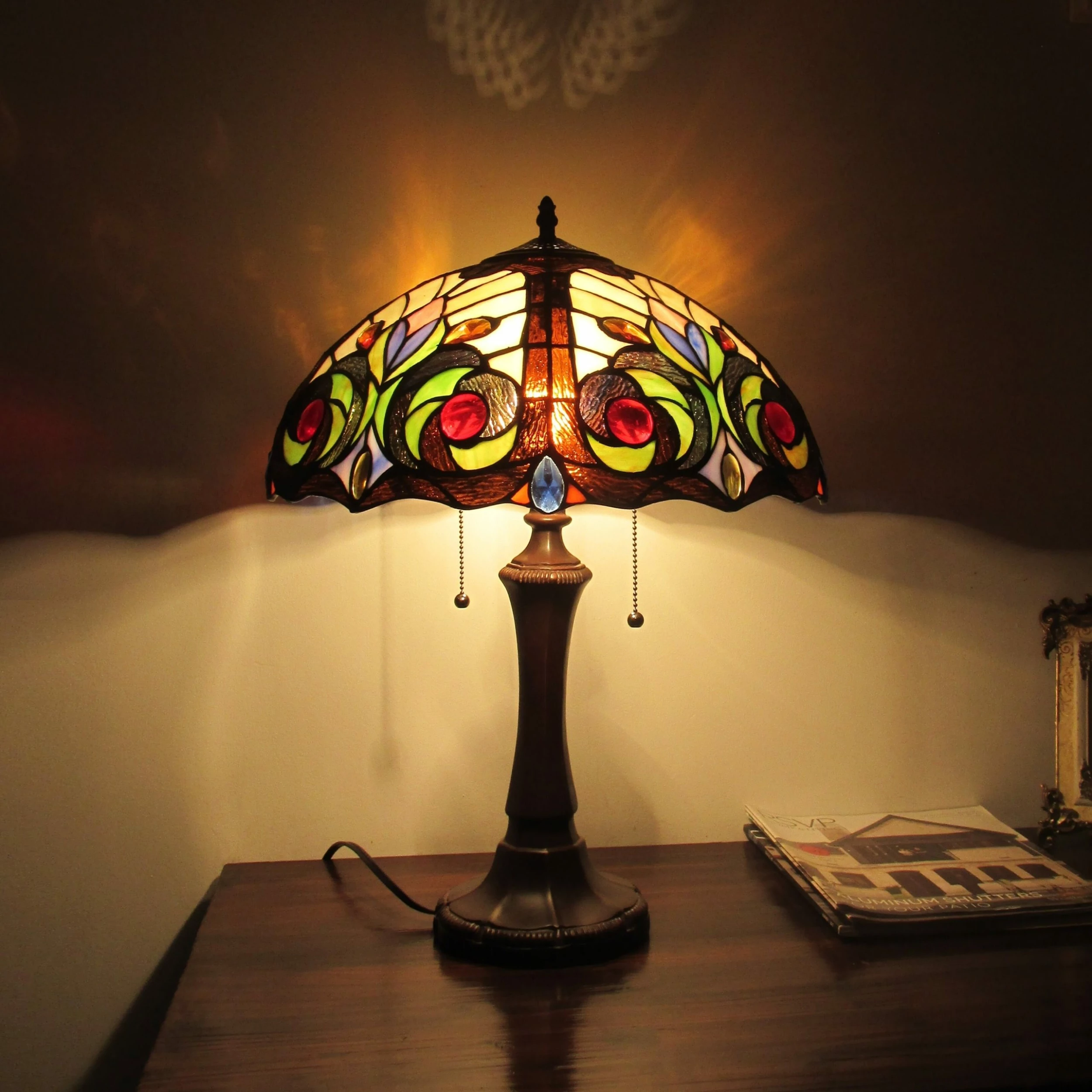 With a distinctive style reminiscent of old school parlors and stately drawing rooms, this Tiffany-style, two-light table lamp showcases a dark bronze finish that makes for a timeless piece you’re sure to treasure. Crafted from 265 pieces of hand cut art glass, fifteen glass beads, and fifteen glass crystals, this piece brings regal distinction to any space in which it’s placed.