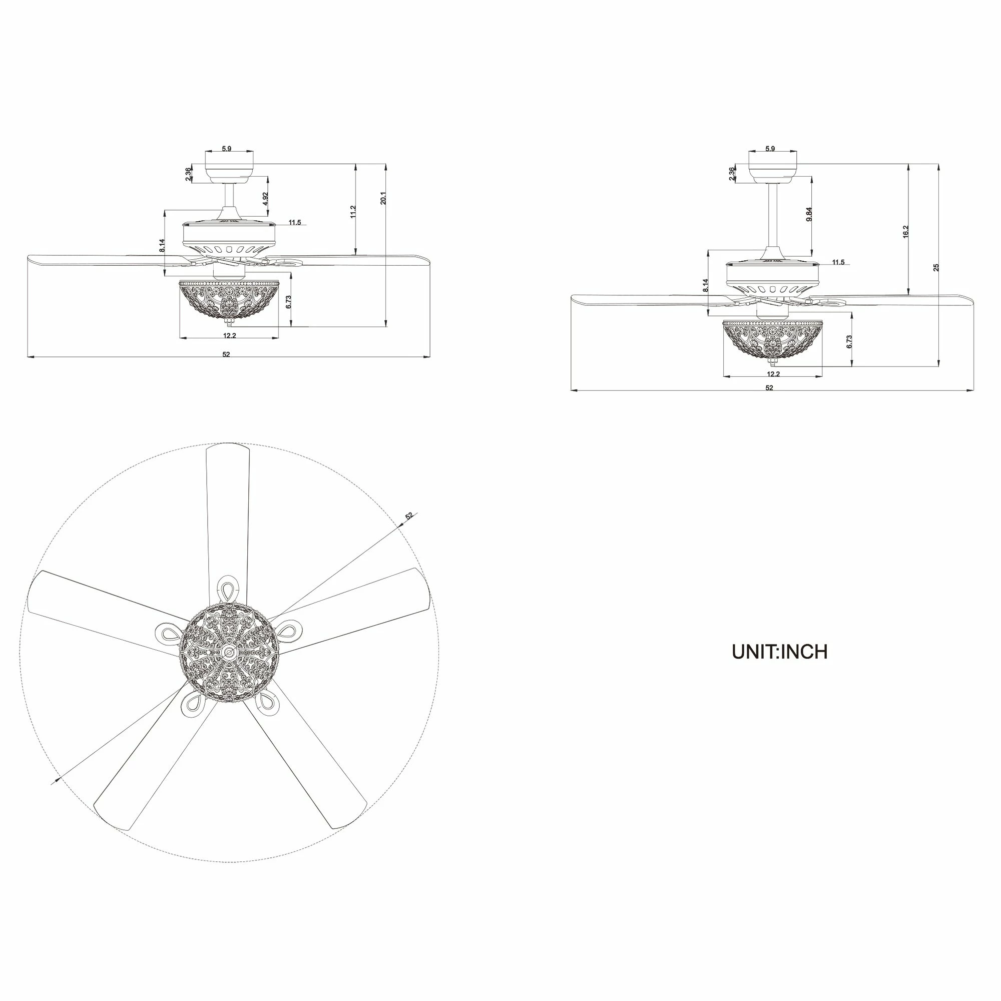 - Overall: 52 inches in diameter x 20.1 inches tall