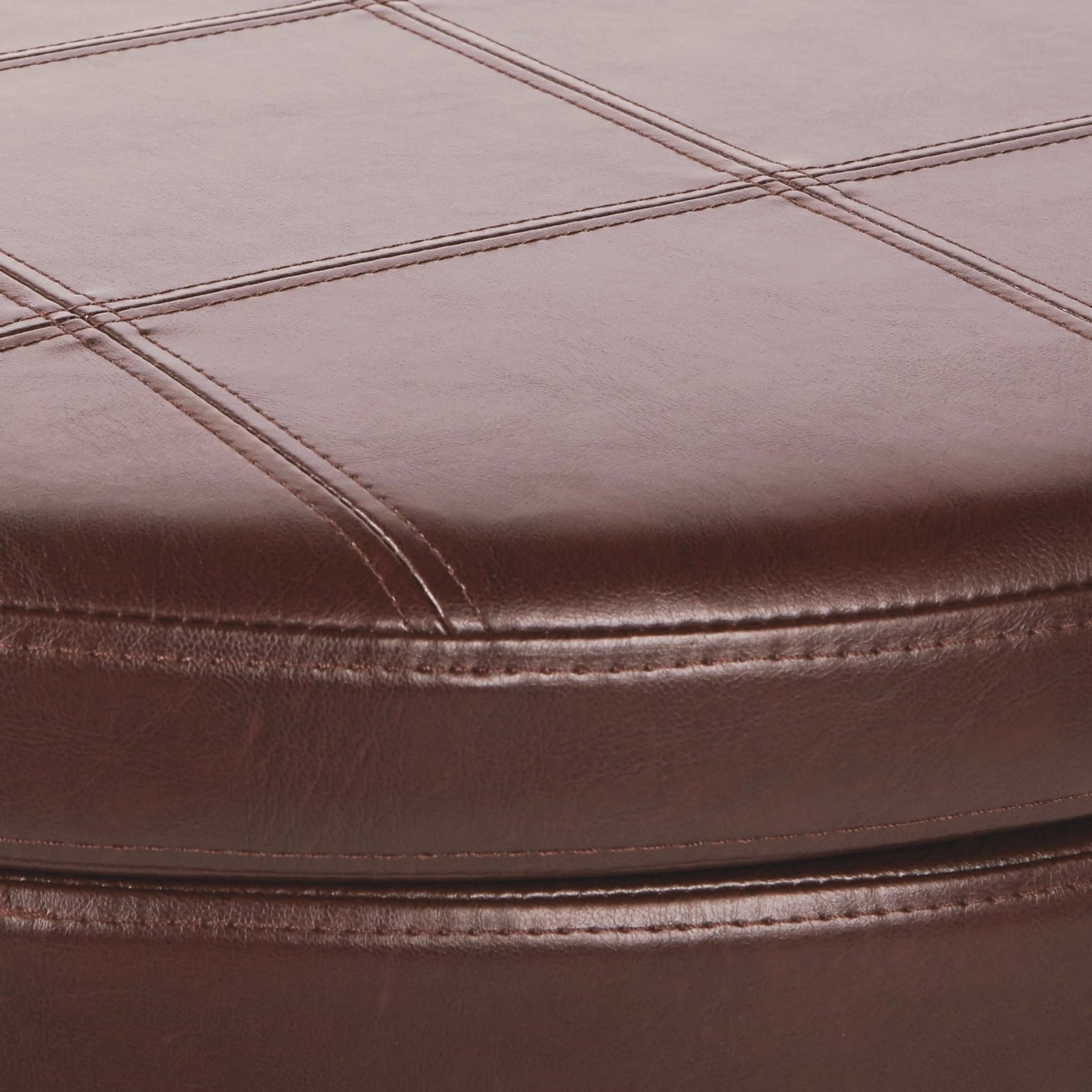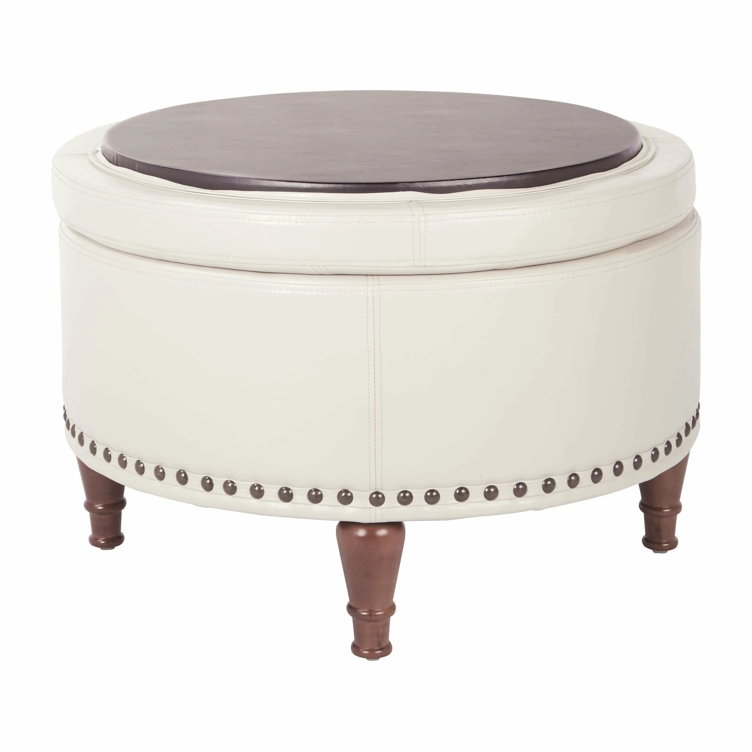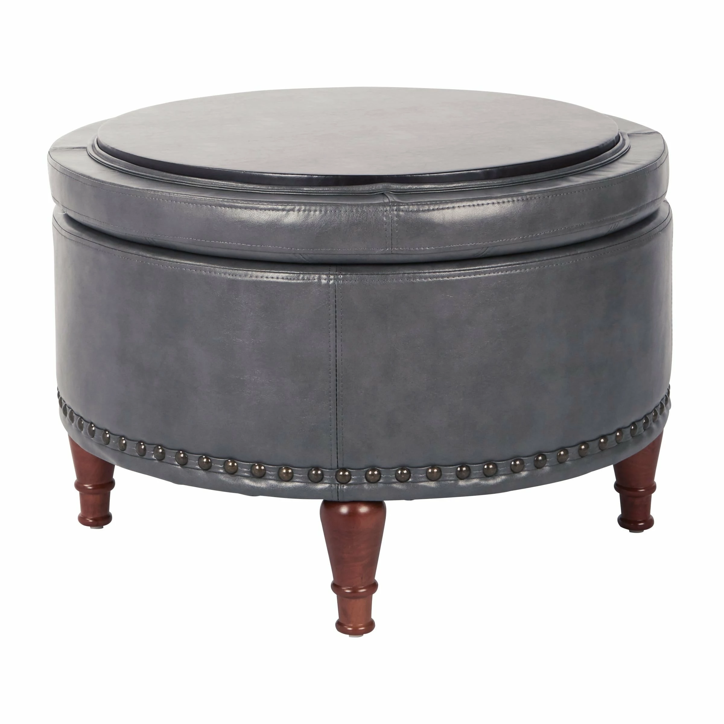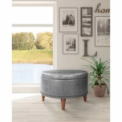 This gorgeous and tough storage ottoman garnishes petite functionality for your home. Capable of storing a variety of personal belongings for the sake of convenience, it adorns your space with chic style, including beautiful nailhead accents and sturdy wood legs, which are finished in a ravishing walnut brown and turned, for a robust and stylish piece.