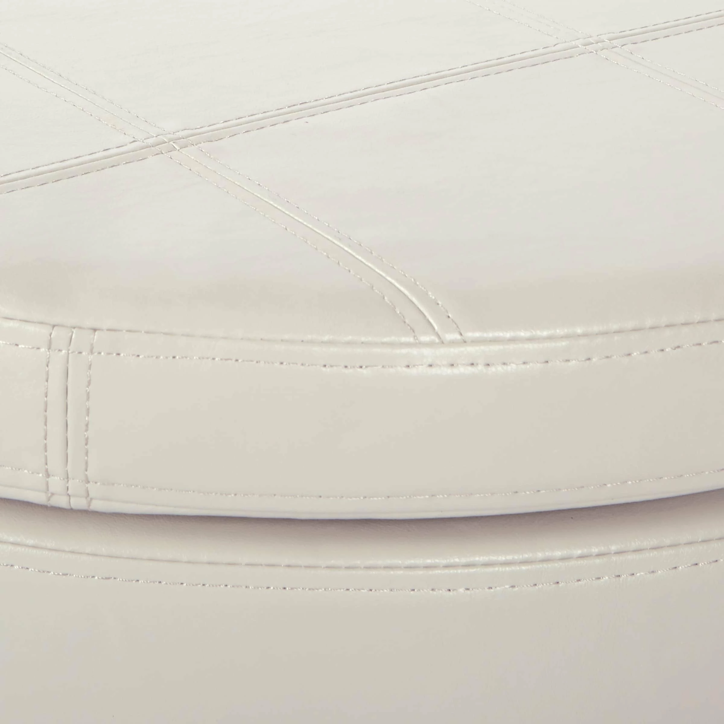 - Your choice of a cream, espresso, or pewter faux leather upholstery