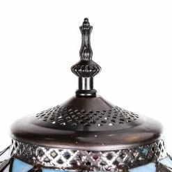 Grandiose glamour! This stained glass double lit lamp is handcrafted with an incredible 1,199 pieces of glass and 34 cabochons. Delicate beads adorn the edge of the shade, as a multitude of lovely art glass colors drenches your home with deep, rich, memorable illumination.