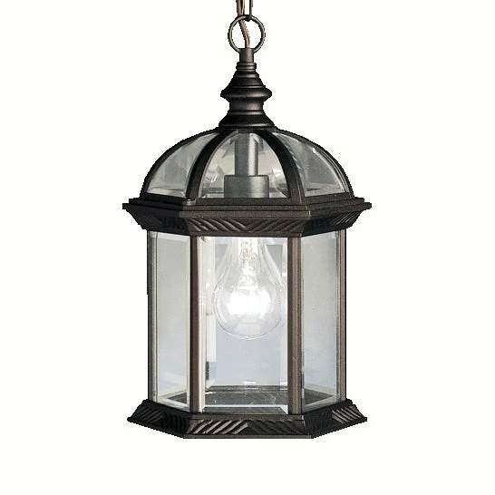 Hang this Lleshanaku outdoor pendant from Gracewood Hollow on your front porch next to your door or on the back porch near an outdoor dining set. The hexagonal lantern features clear beveled glass, an aluminum frame, a black finish, and a domed top.