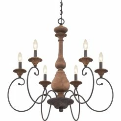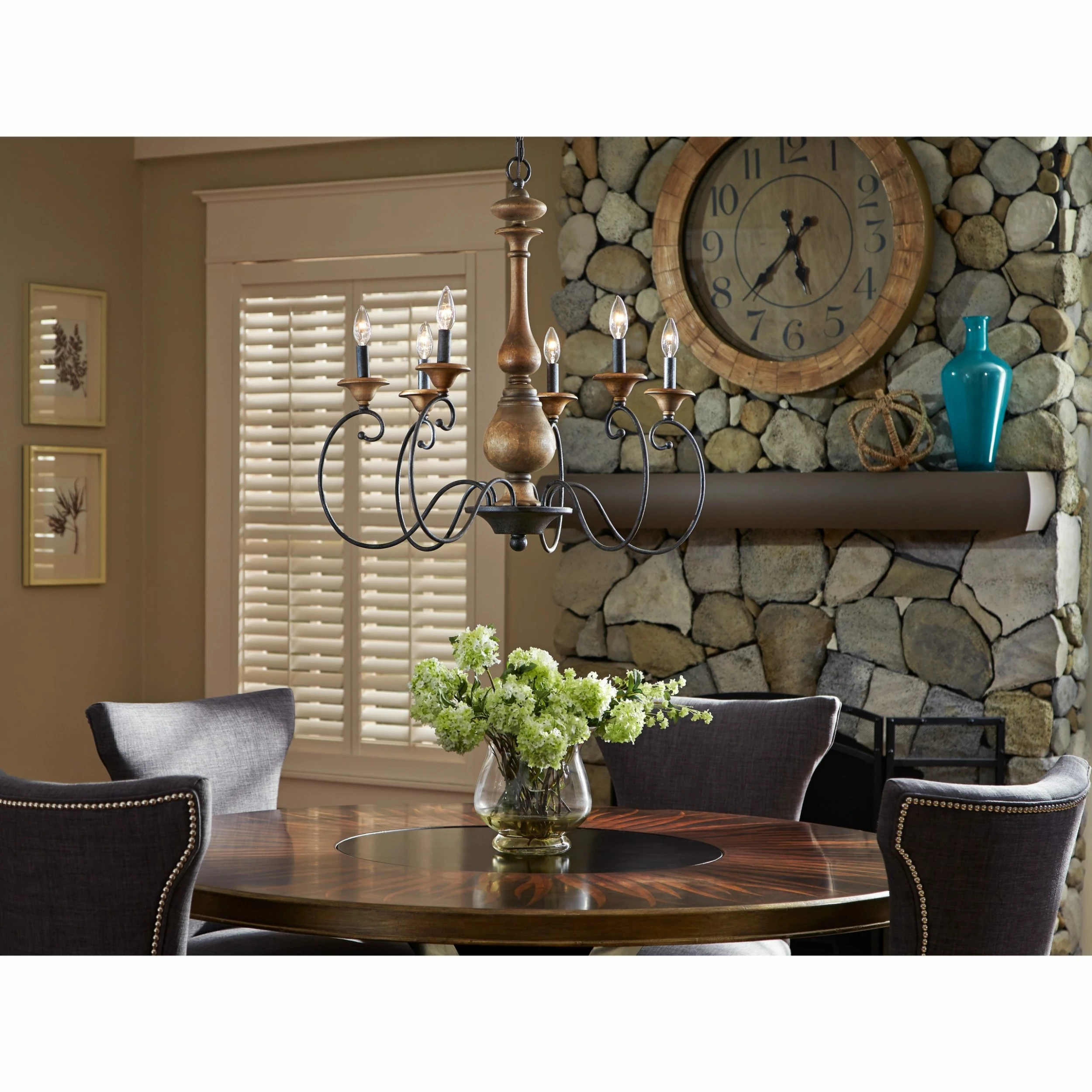 Elevate your home with this stunning chandelier. Six lights provide brilliant illumination, while the rich black and brown finishes offer a rustic touch. The chandelier’s sleek, curving lines complement any decor with elegance.