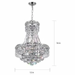 Dimensions: H 16 inches x W 12 inches x D 12 inches – Chrome Finish – Requires 4 E12 Bulbs Max 60 W (sold separately) – Includes 72 inches of chain