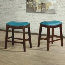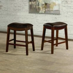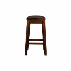 With a backless style for a modern touch, this counter stool also includes nailhead trim for an upscale look, not to mention your choice of three fabulous faux leather upholstery colors for its seat. This beautifully styled stool flaunts a rubberwood base complete with a deep chestnut finish as well as foam-filled, cushioned seating for superior support.