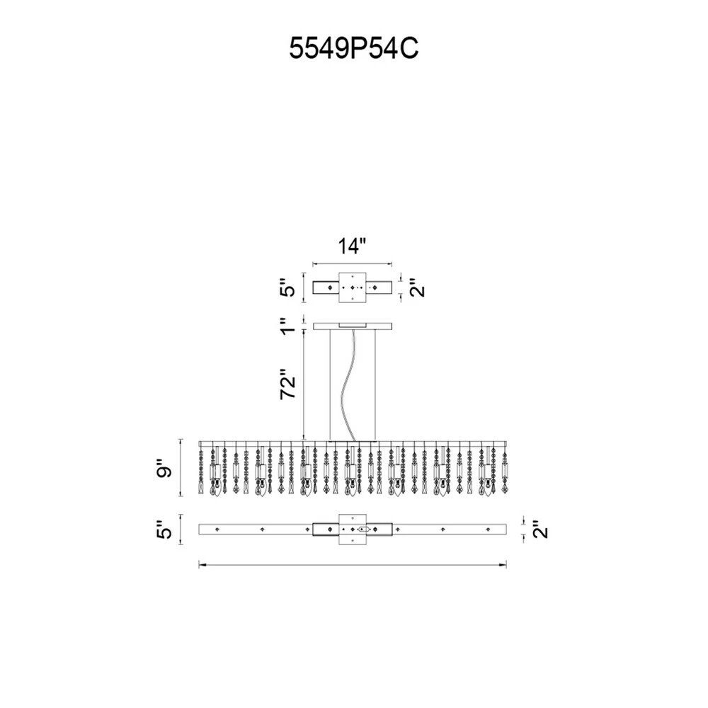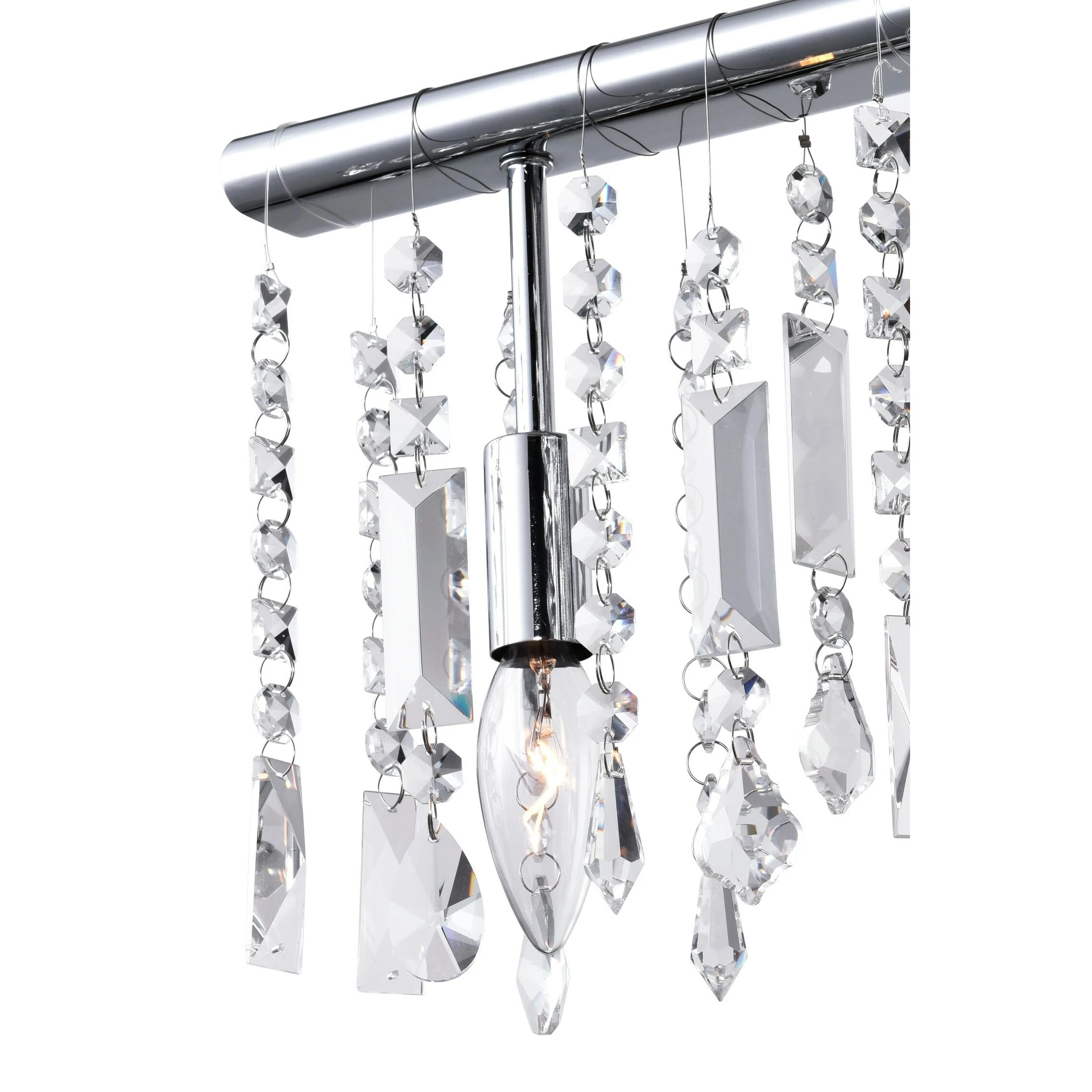 Dimensions: H 12 inches x W 54 inches x D 2 inches – Chrome Finish – Requires 7 E12 Bulbs Max 60 W (sold separately) – Includes 72 inches of rod