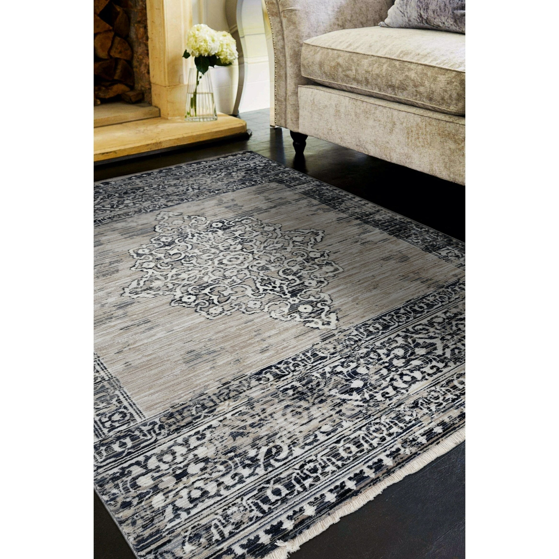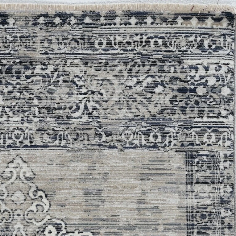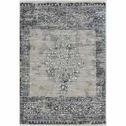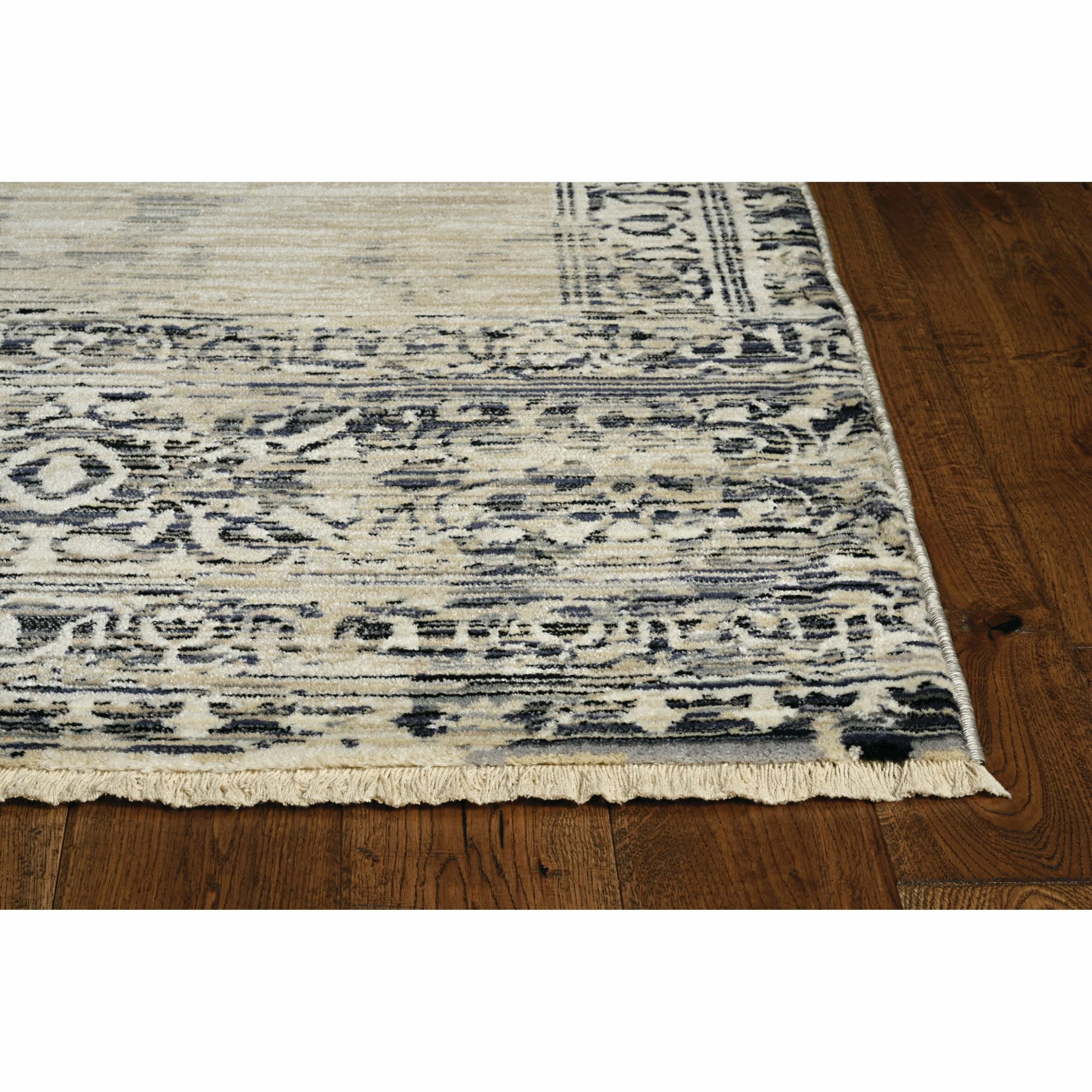 This vintage style rug has a distressed traditional design with fringed ends that add an elegant touch to any room. The Renza collection is crosswoven with polypropelene making it stain resistant and pet friendly while maintaining a high sheen pile with a hi-low texture. The use of a rug pad is recommended as there is no backing. Vacuum regularly & spot clean stains as needed.