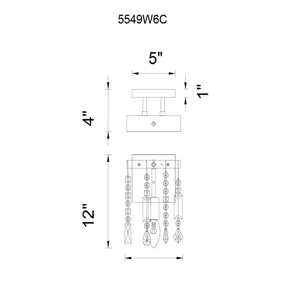 This breathtaking 1 Light Wall Sconce with Chrome Finish is a beautiful piece. With its sophisticated beauty and stunning details, it is sure to add the perfect touch to your decor. – Dimensions: H 9.5 inches x W 6 inches x D 4 inches – Chrome Finish – Requires 1 E12 Bulbs Max 40 W (sold separately) – Crystal Style