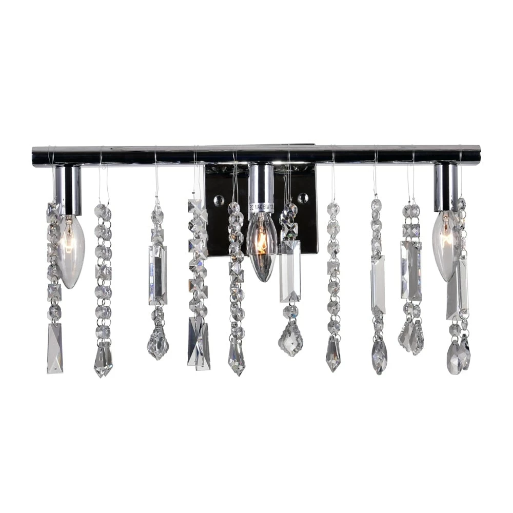 This breathtaking 3 Light Wall Sconce with Chrome Finish is a beautiful piece. With its sophisticated beauty and stunning details, it is sure to add the perfect touch to your decor. – Dimensions: H 12 inches x W 18 inches x D 4 inches – Chrome Finish – Requires 3 E12 Bulbs Max 40 W (sold separately) – Crystal Style