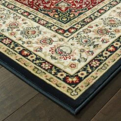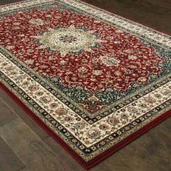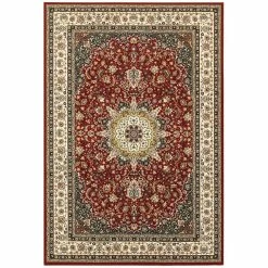Made from polypropylene for vintage style, this stain resistant Stora area rug from Gracewood Hollow will update your parlor. The machine-woven rug is rendered in ivory and red colors. A geometric, floral medallion pattern with scrollwork leaf and flower detailing, and a blossom border completes the fascinating flair of this rectangular rug.