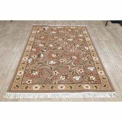 This is a recently made machine made genuine Turkish area rug with polyester & jute pile, which is in new, first quality condition. Machine-Made rugs are the cost effective of all types of carpets – enabling everyone to experience an rug in home. With the help of machines, a single weaver is adequate to producing 35 Sq. yards of rug in a day. Traditionally Machine-Made rugs have not been considered suitable for long-term use, this however, is changing with better quality materials being used. This innovation combined with quick production time & less labor makes it a popular alternate for low-cost home-decor. As these Machine-made carpets are often disguised as hand-made rugs, we want our customers to make an informed purchase. We recommend a rug pad with all machine-made carpets, as they have a very thin lining which can leave the rug slippery.